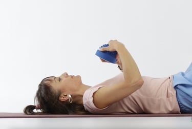 En el Ejercicio 18 cerramos el Bloque de Hombros y Cuello, integrando el trabajo de las dos clases anteriores. Desde la posición tumbado/a boca arriba, unimos conciencia, apoyo y movilidad de la parte alta de la espalda, hombros y cuello en una secuencia más completa.